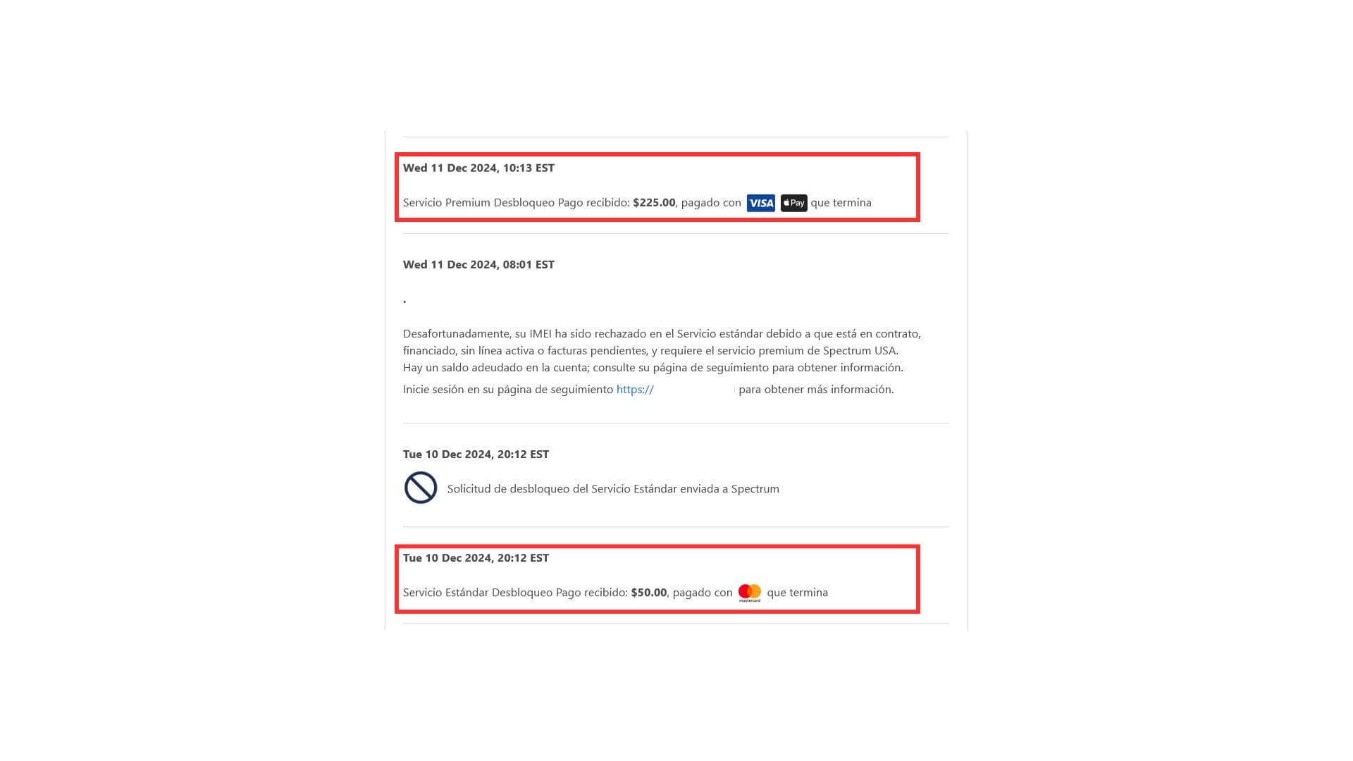 Luego de realizar dos pagos, uno para el servicio de liberación standard y el otro para el servicio premium, este último ofrecÃa un rembolso completo de ambos pagos en caso de no lograr la liberación del operador.